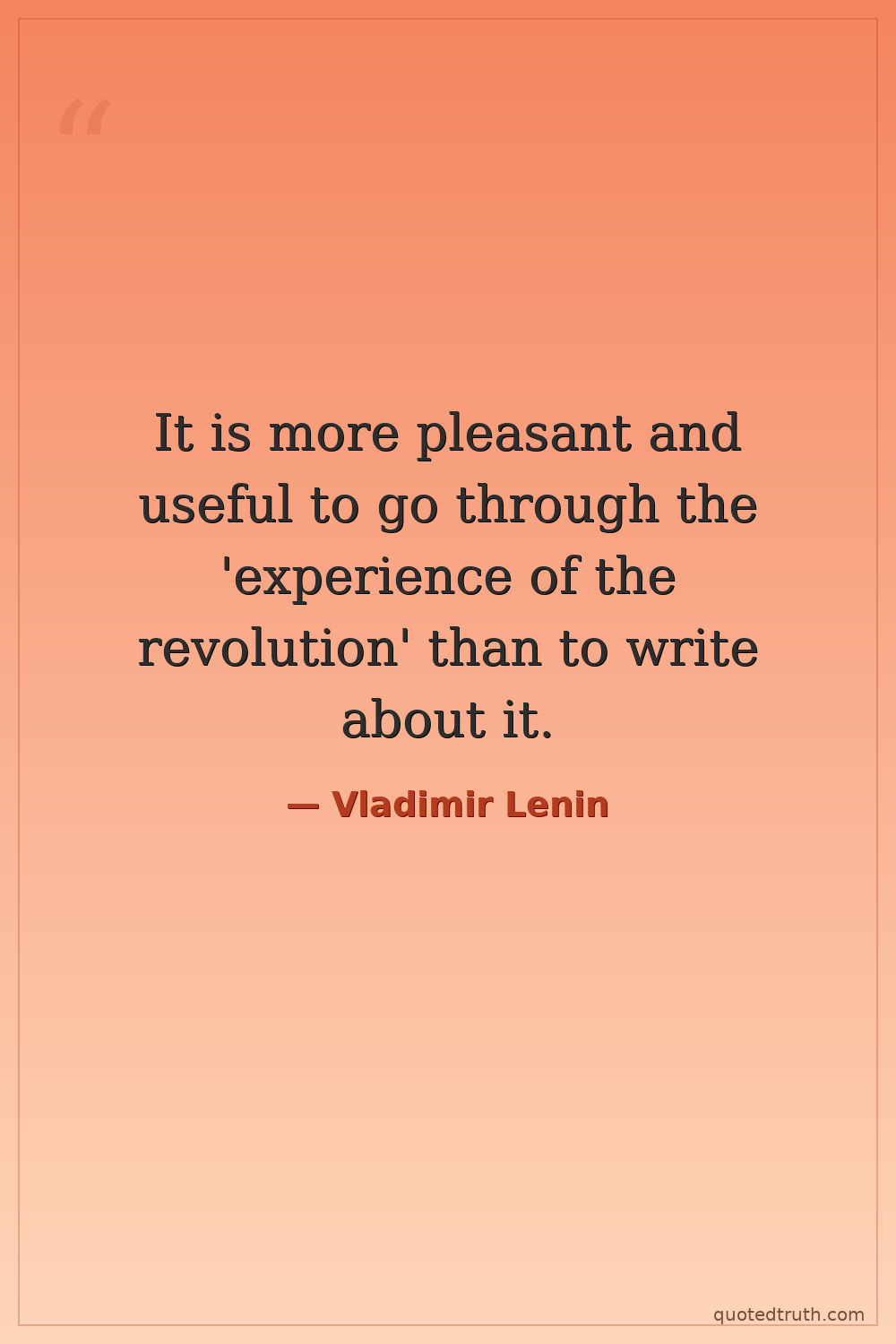It is more pleasant and useful to go through the 'experience of the revolution' than to write about it.
