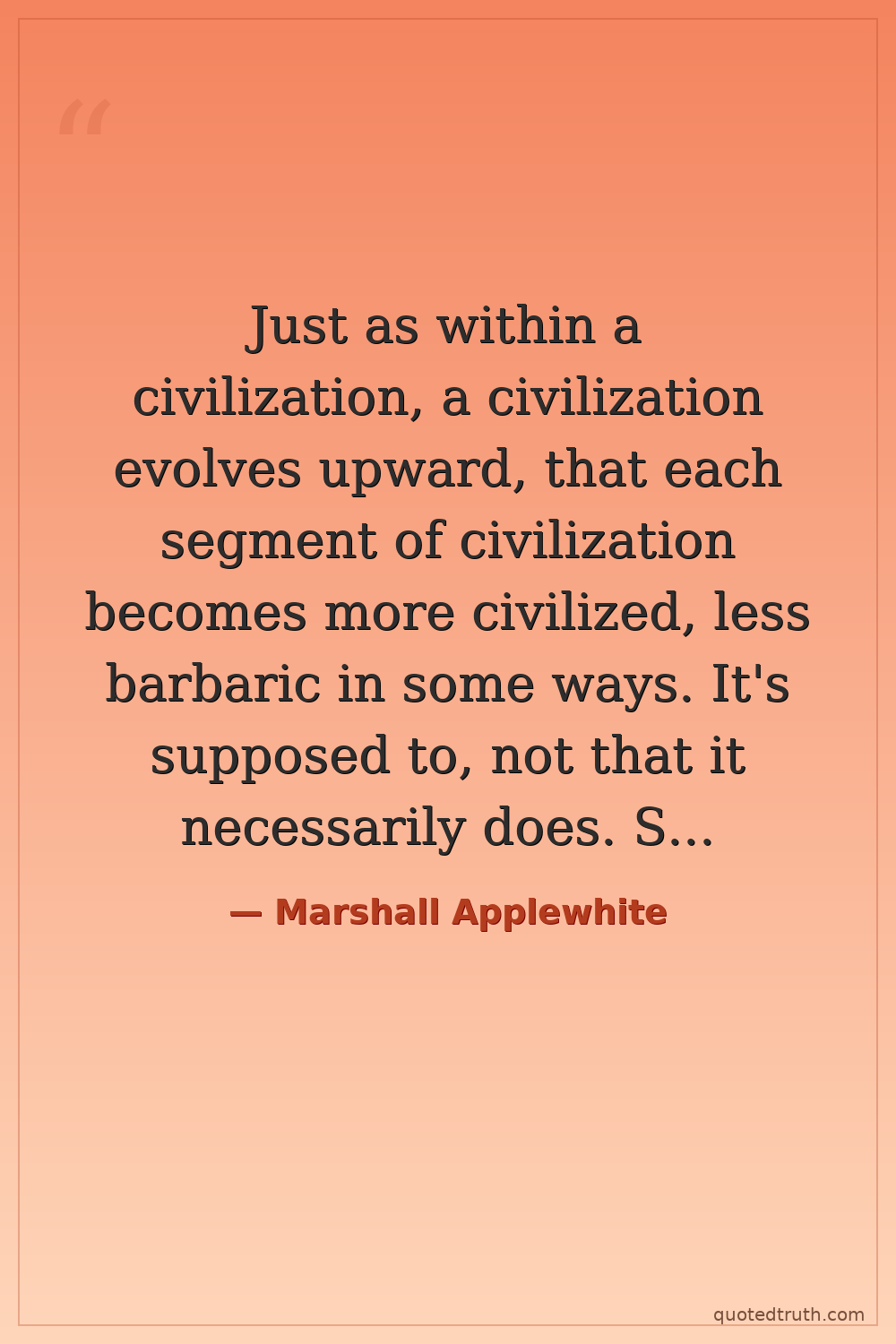 Just as within a civilization, a civilization evolves upward, that each segment of civilization becomes more civilized, less barbaric in some ways. It's supposed to, not that it necessarily does. Sometimes it seems to appear to be more civilized when in fact it becomes more barbaric. More quick to condemn the rest of the world, more quick to be, quick to kill the rest of the world that does not think as it thinks.