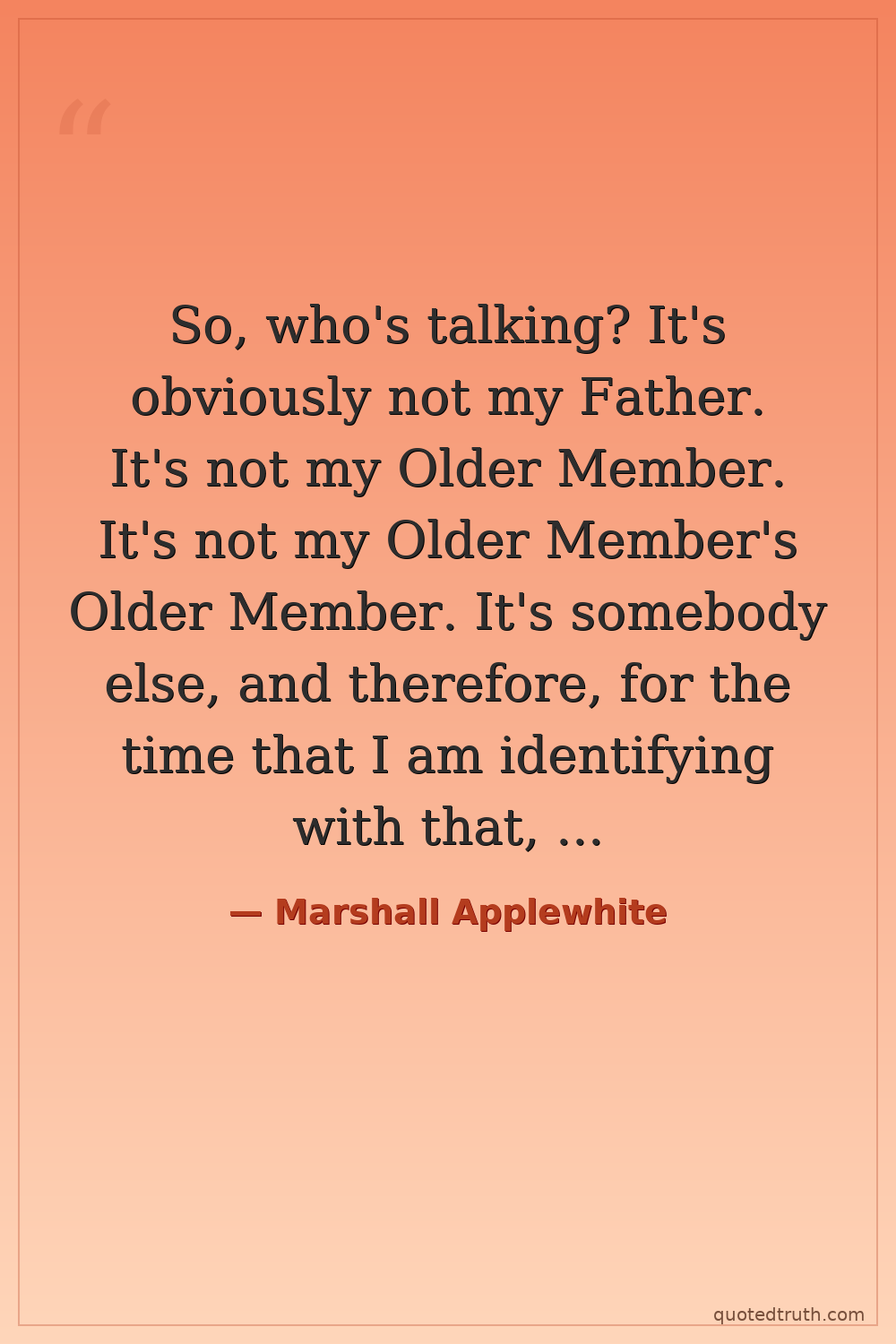 So, who's talking? It's obviously not my Father. It's not my Older Member. It's not my Older Member's Older Member. It's somebody else, and therefore, for the time that I am identifying with that, then it is not my Heavenly Father, my Older Member speaking. I am not a vessel - I am a separate identity.