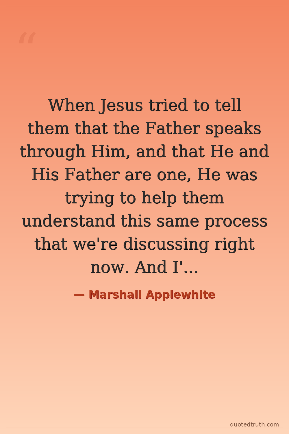 When Jesus tried to tell them that the Father speaks through Him, and that He and His Father are one, He was trying to help them understand this same process that we're discussing right now. And I'm so glad that it was pointed out to me and I was reminded how easily I can get off the track in that way.