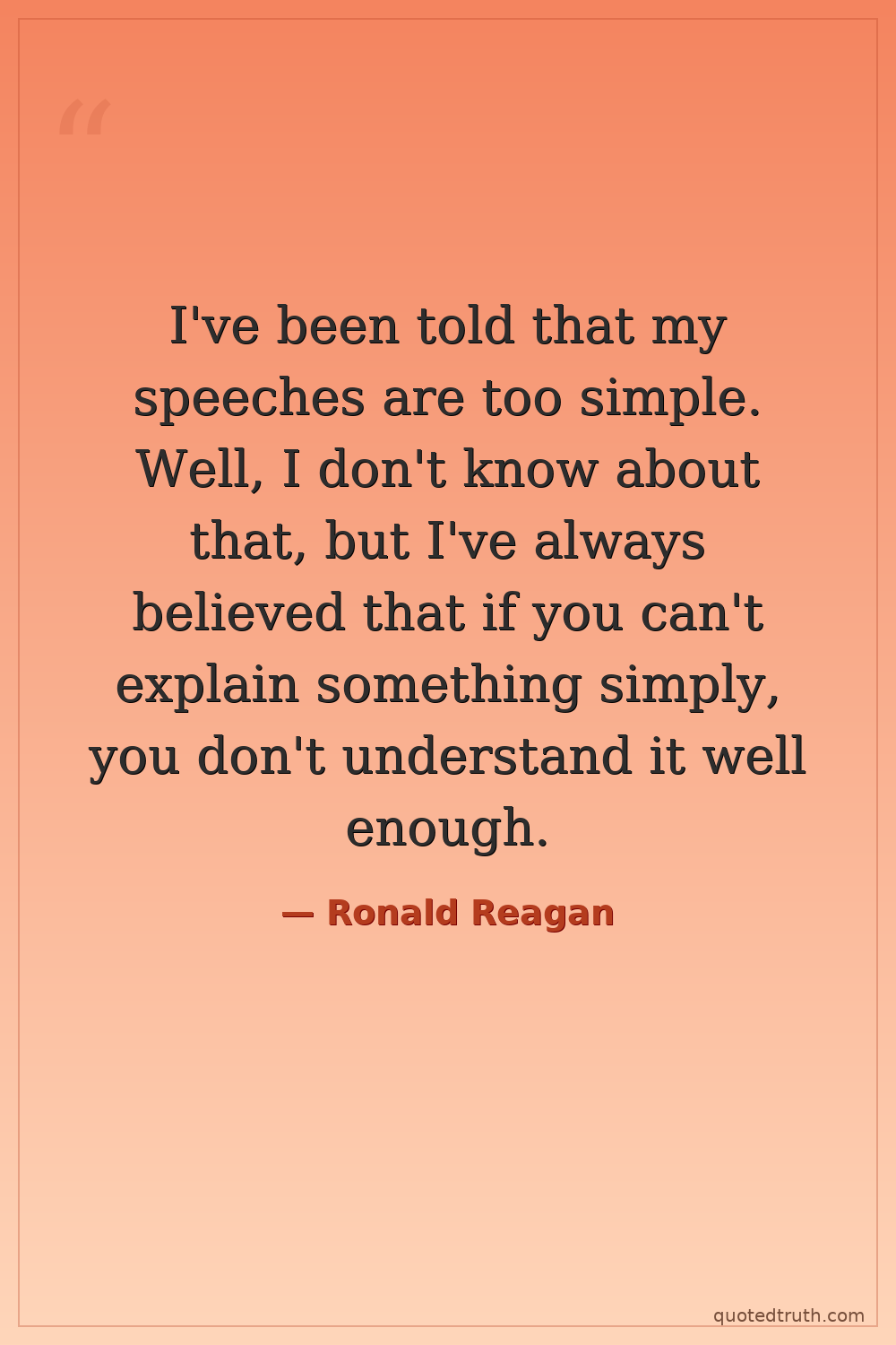 I've been told that my speeches are too simple. Well, I don't know about that, but I've always believed that if you can't explain something simply, you don't understand it well enough.