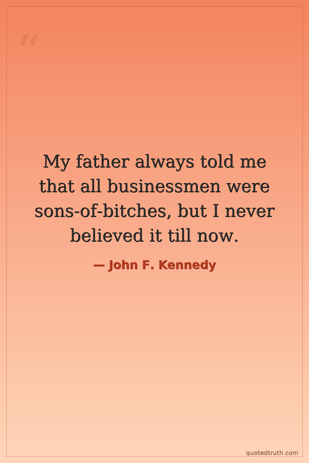 My father always told me that all businessmen were sons-of-bitches, but I never believed it till now.