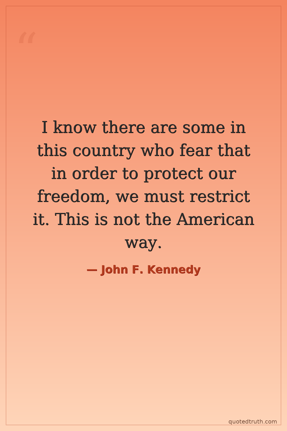 I know there are some in this country who fear that in order to protect our freedom, we must restrict it. This is not the American way.