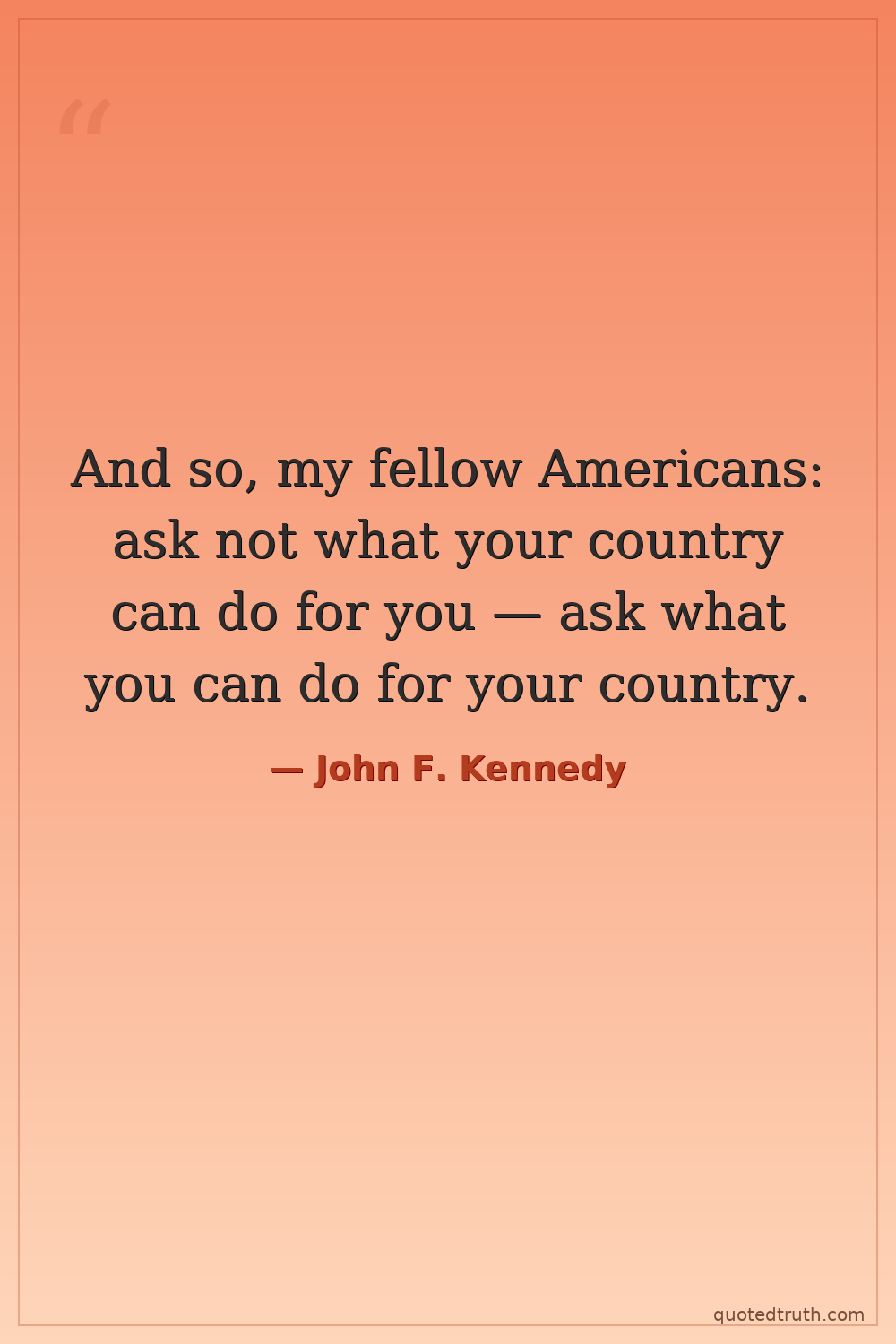 And so, my fellow Americans: ask not what your country can do for you — ask what you can do for your country.