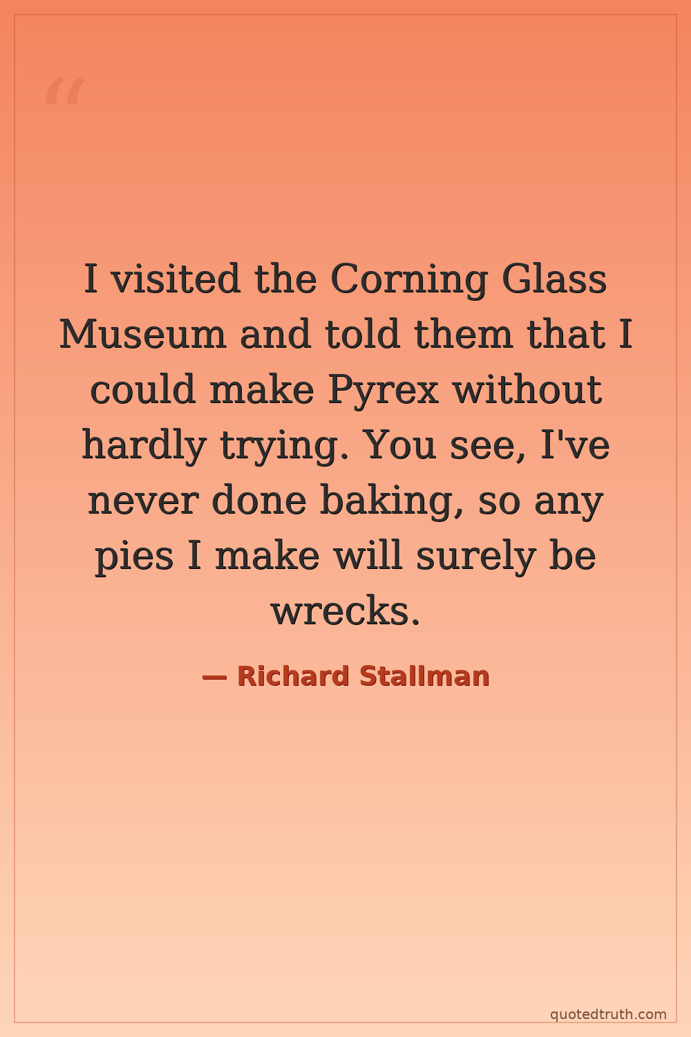 I visited the Corning Glass Museum and told them that I could make Pyrex without hardly trying. You see, I've never done baking, so any pies I make will surely be wrecks.