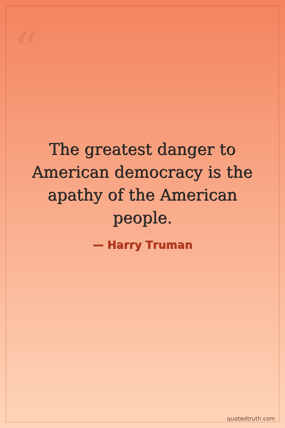 The greatest danger to American democracy is the apathy of the American people.