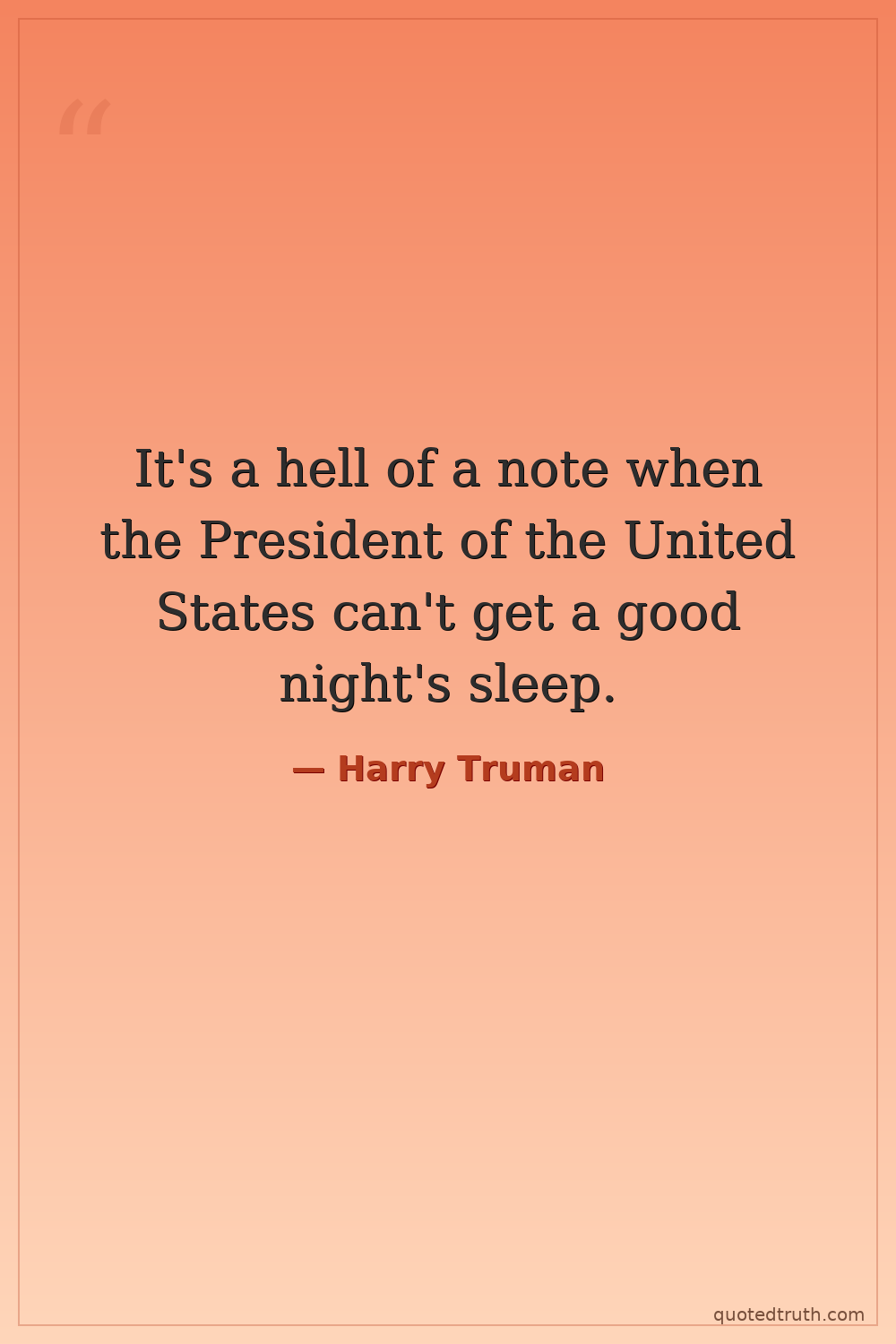 It's a hell of a note when the President of the United States can't get a good night's sleep.