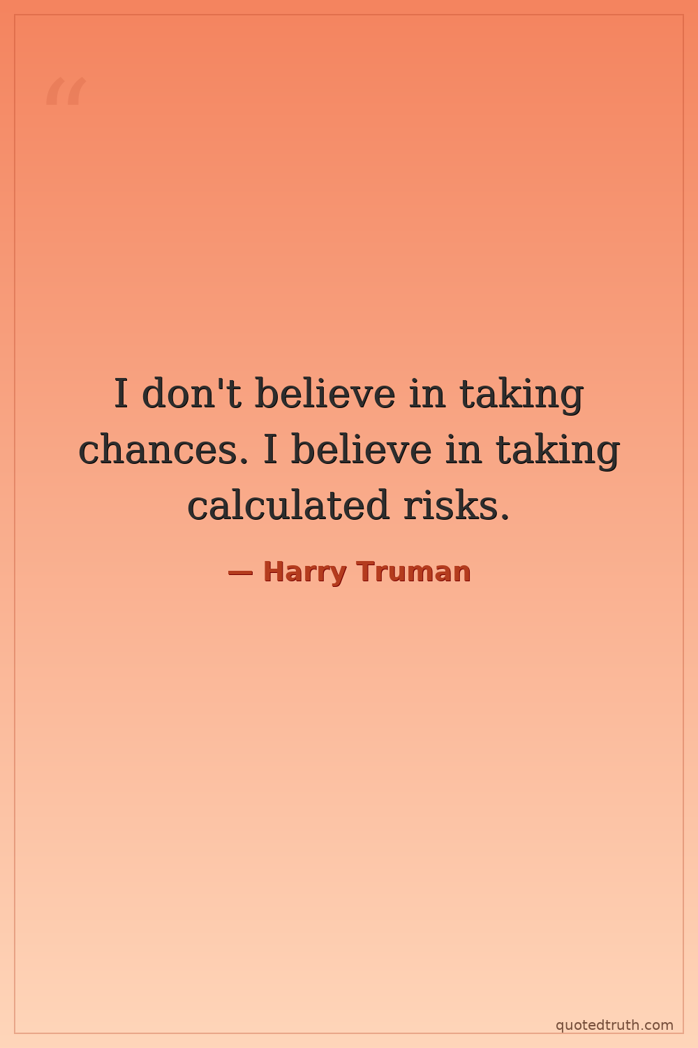I don't believe in taking chances. I believe in taking calculated risks.