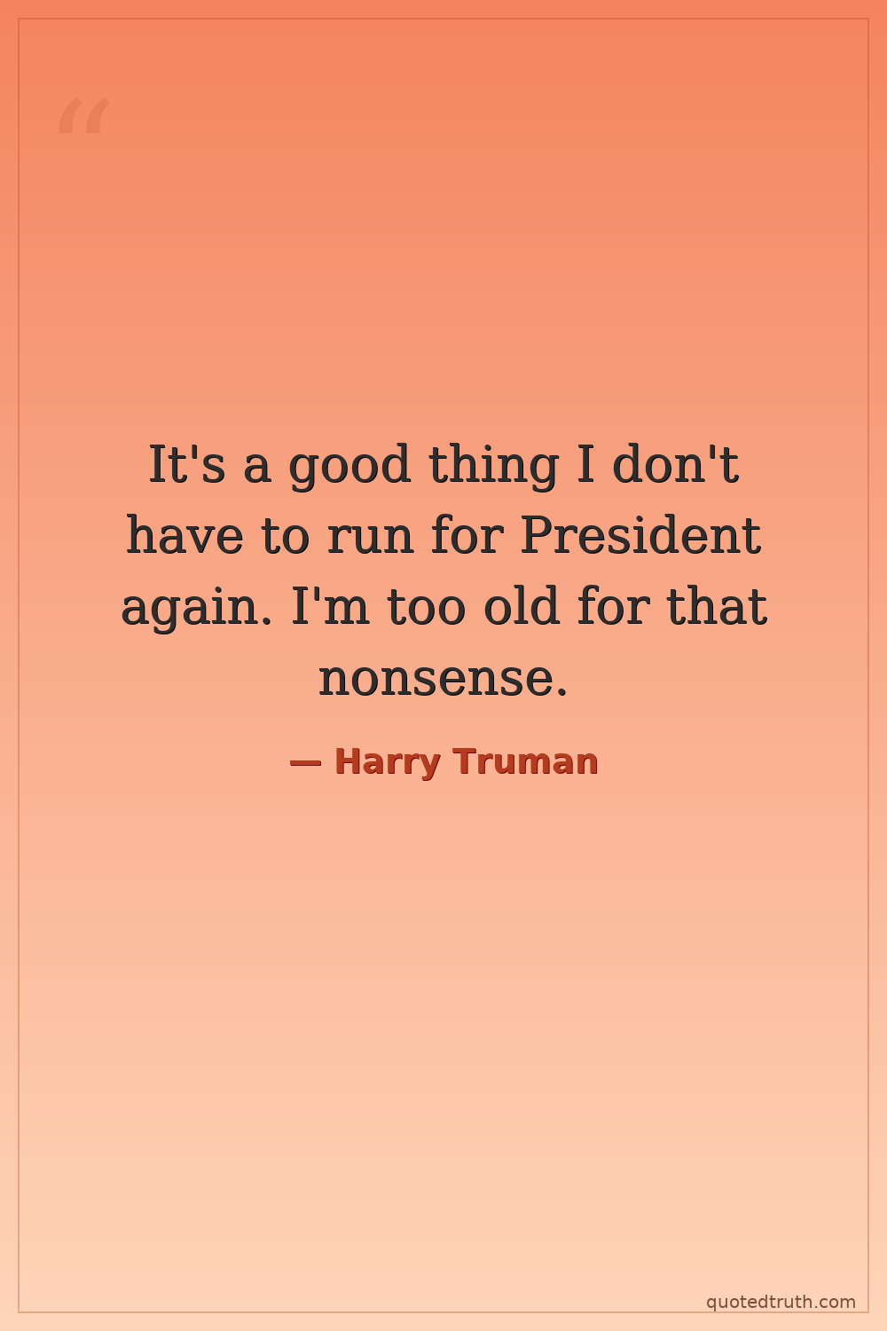 It's a good thing I don't have to run for President again. I'm too old for that nonsense.
