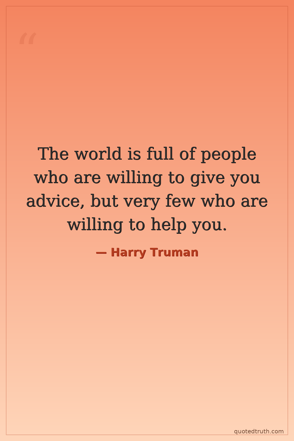 The world is full of people who are willing to give you advice, but very few who are willing to help you.