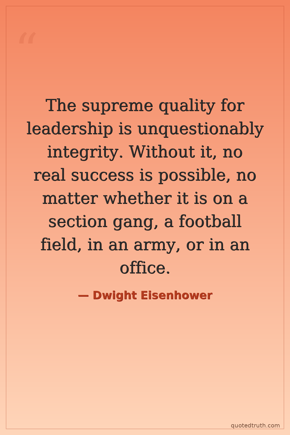 The supreme quality for leadership is unquestionably integrity. Without it, no real success is possible, no matter whether it is on a section gang, a football field, in an army, or in an office.