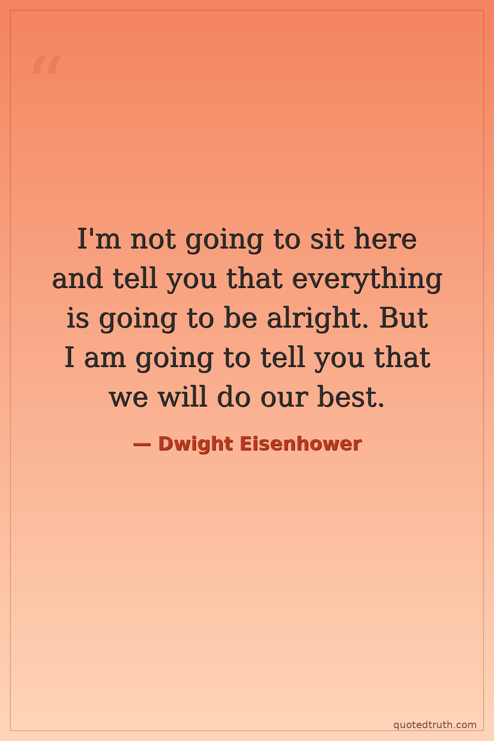 I'm not going to sit here and tell you that everything is going to be alright. But I am going to tell you that we will do our best.