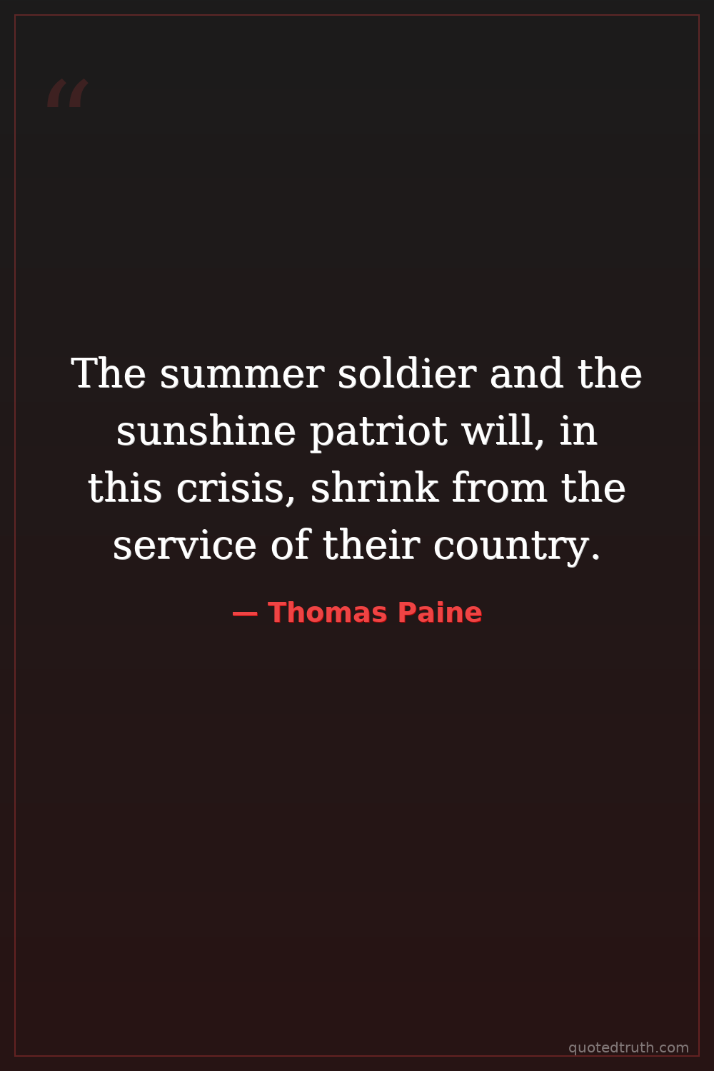 The summer soldier and the sunshine patriot will, in this crisis, shrink from the service of their country.