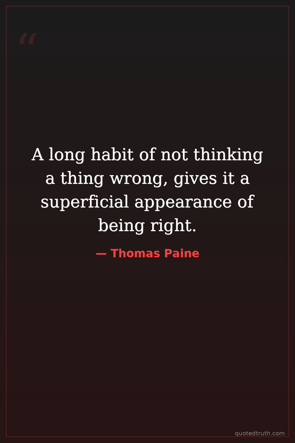 A long habit of not thinking a thing wrong, gives it a superficial appearance of being right.
