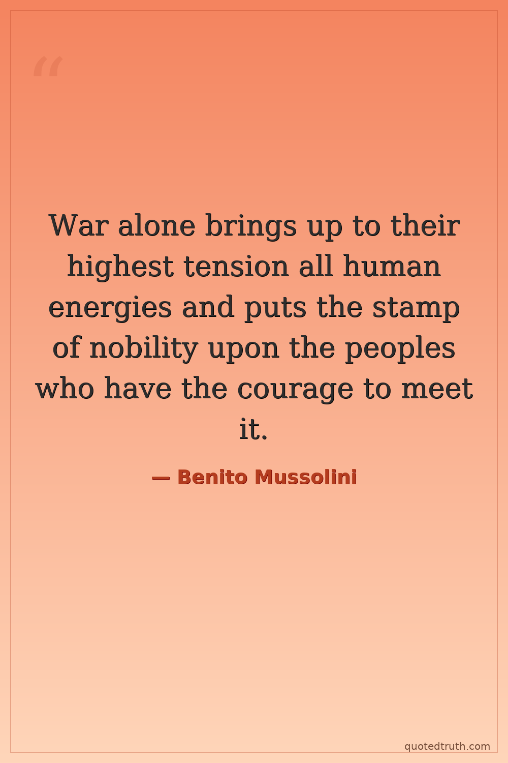 War alone brings up to their highest tension all human energies and puts the stamp of nobility upon the peoples who have the courage to meet it.