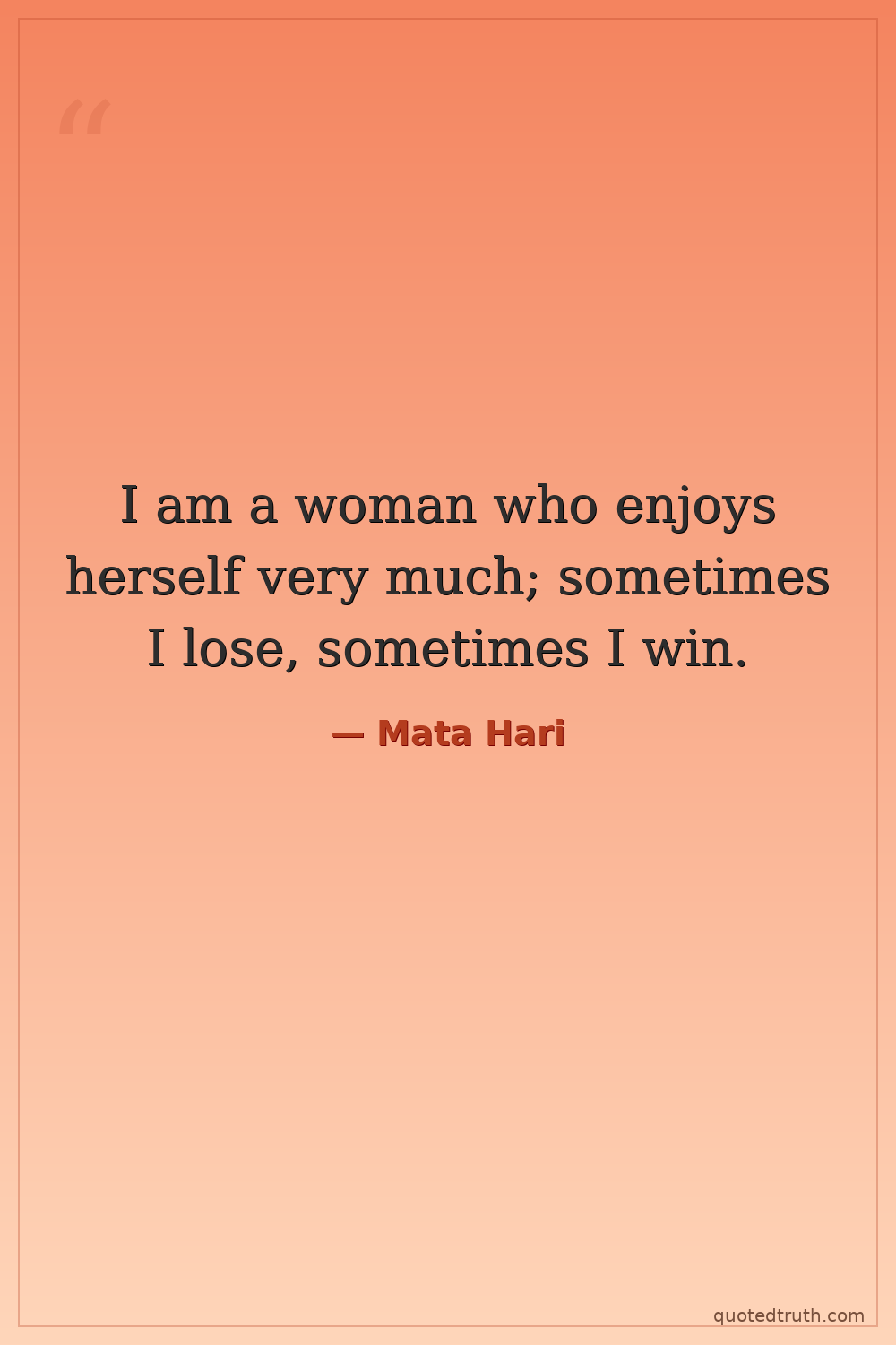 I am a woman who enjoys herself very much; sometimes I lose, sometimes I win.