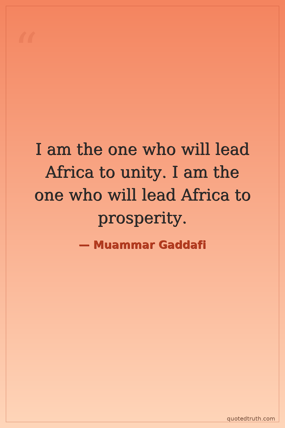 I am the one who will lead Africa to unity. I am the one who will lead Africa to prosperity.