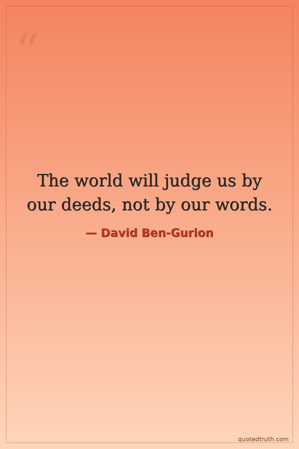 The world will judge us by our deeds, not by our words.
