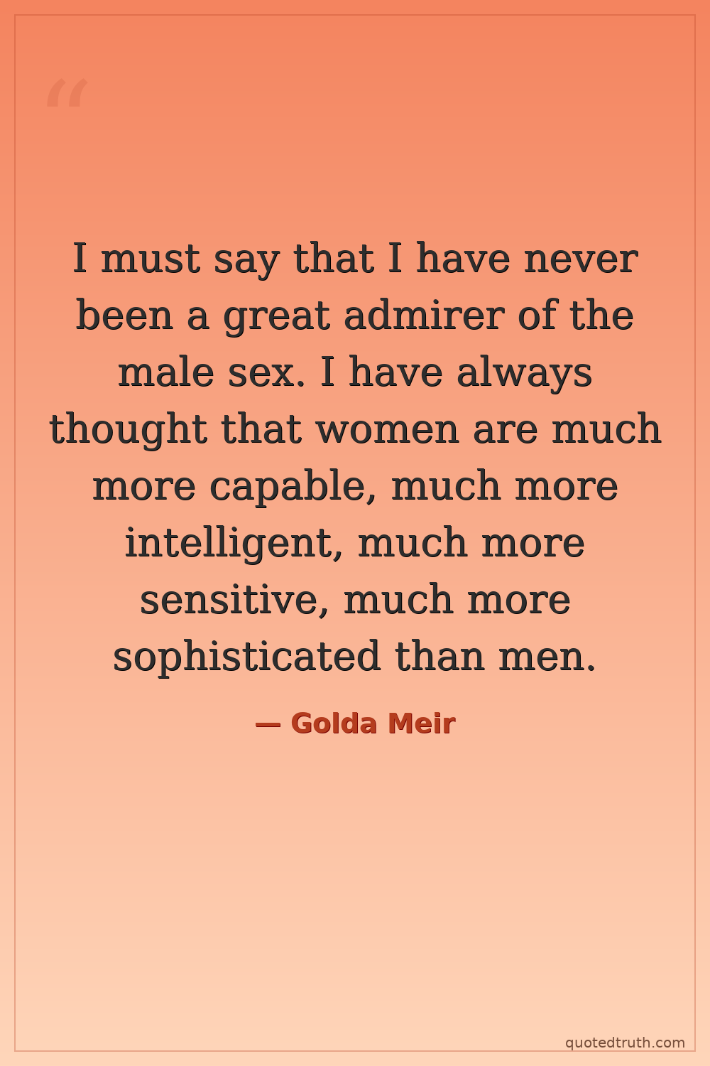 I must say that I have never been a great admirer of the male sex. I have always thought that women are much more capable, much more intelligent, much more sensitive, much more sophisticated than men.