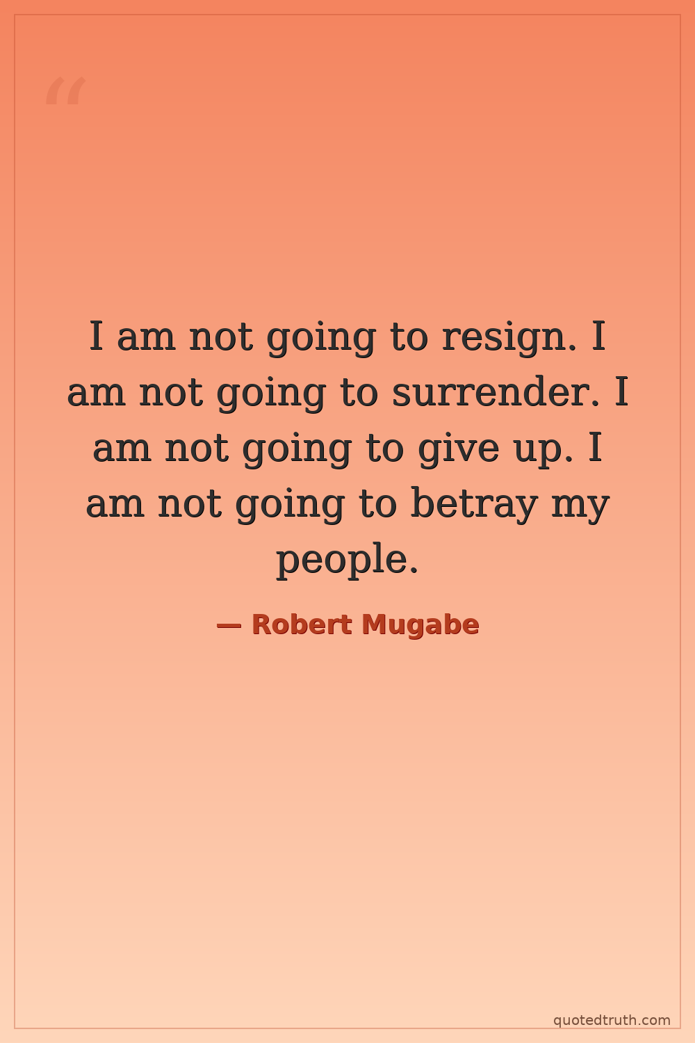 I am not going to resign. I am not going to surrender. I am not going to give up. I am not going to betray my people.