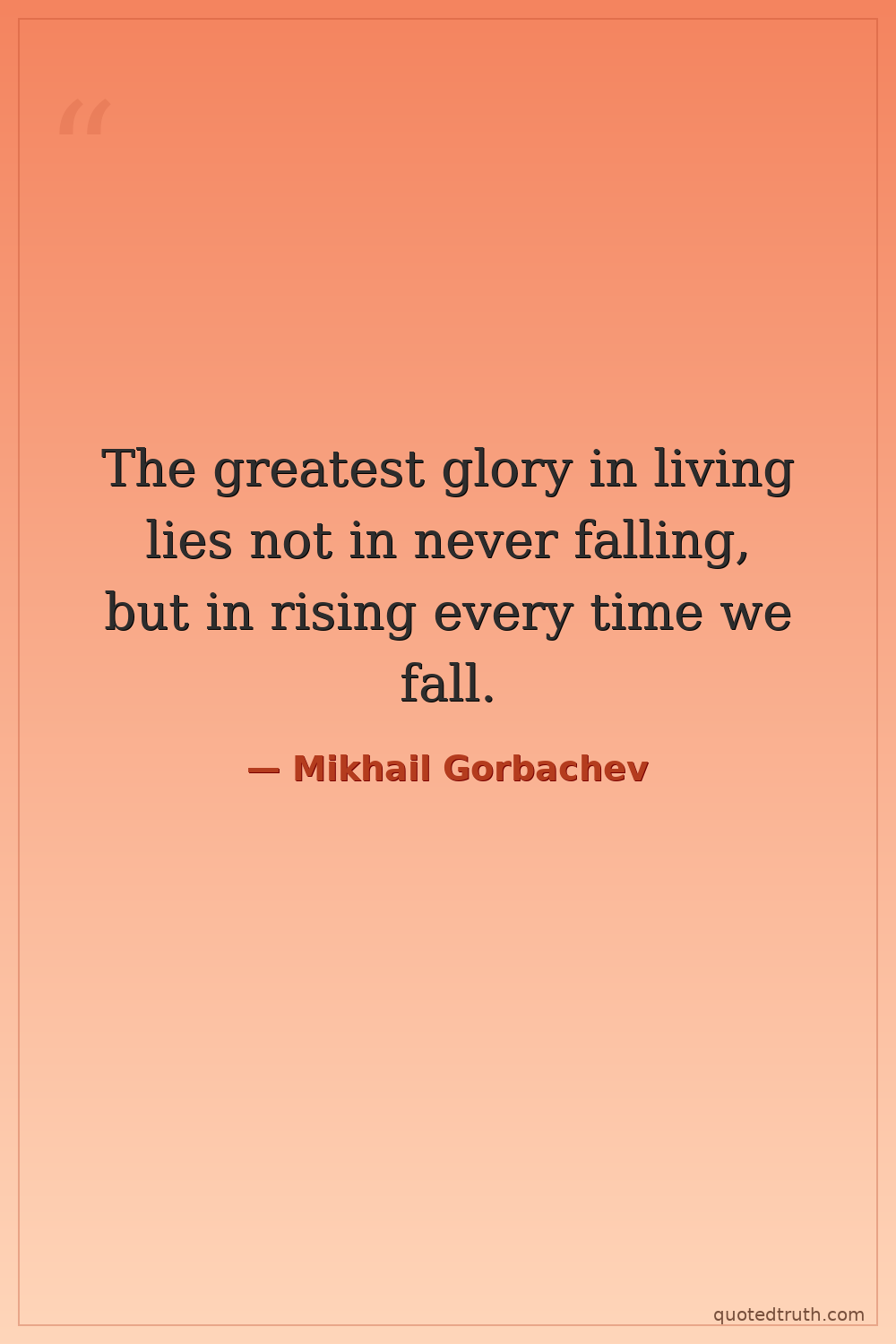The greatest glory in living lies not in never falling, but in rising every time we fall.