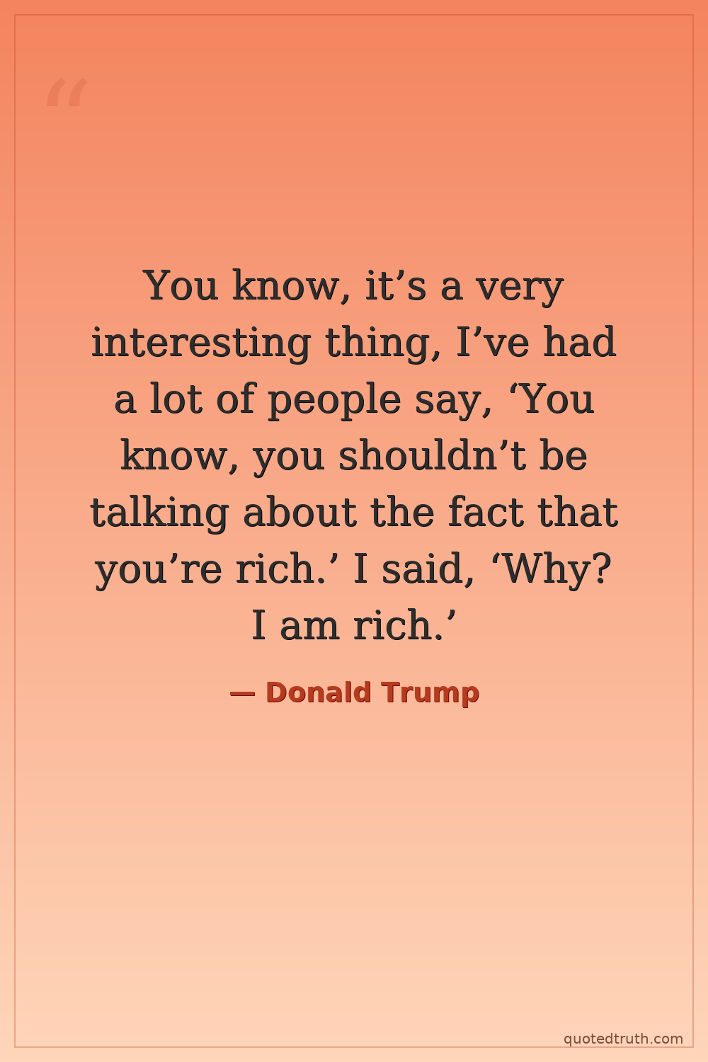 You know, it’s a very interesting thing, I’ve had a lot of people say, ‘You know, you shouldn’t be talking about the fact that you’re rich.’ I said, ‘Why? I am rich.’