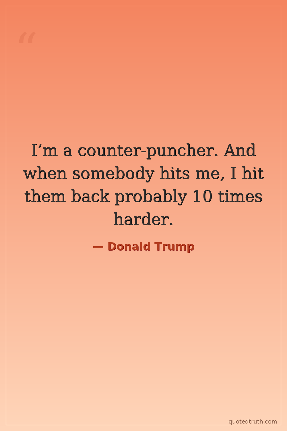I’m a counter-puncher. And when somebody hits me, I hit them back probably 10 times harder.