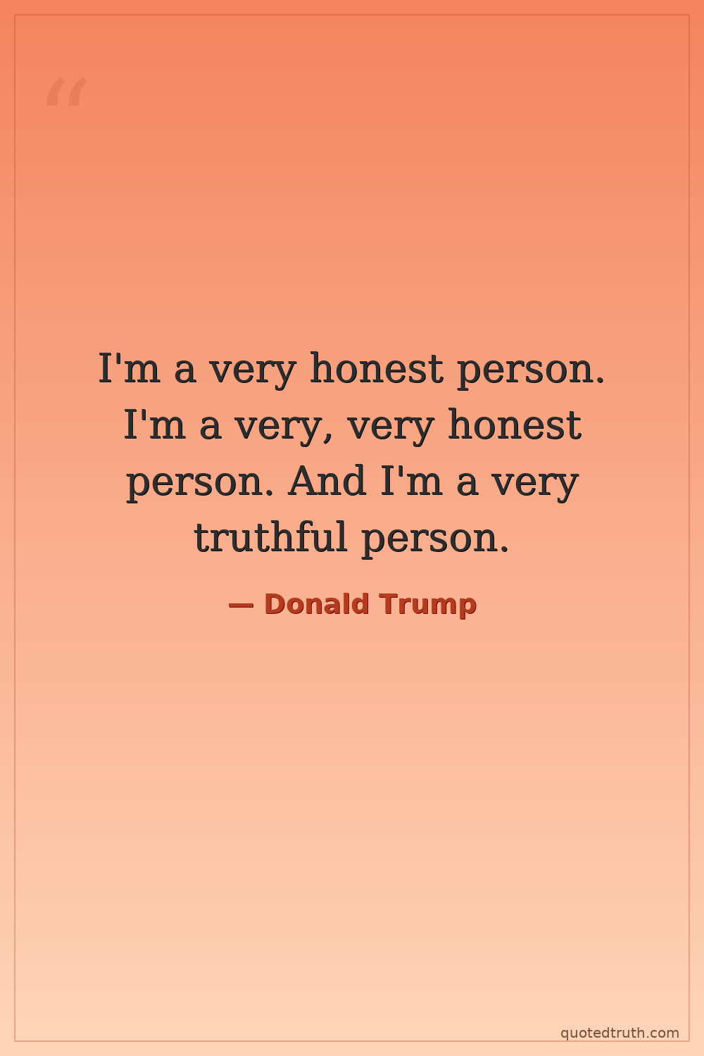 I'm a very honest person. I'm a very, very honest person. And I'm a very truthful person.