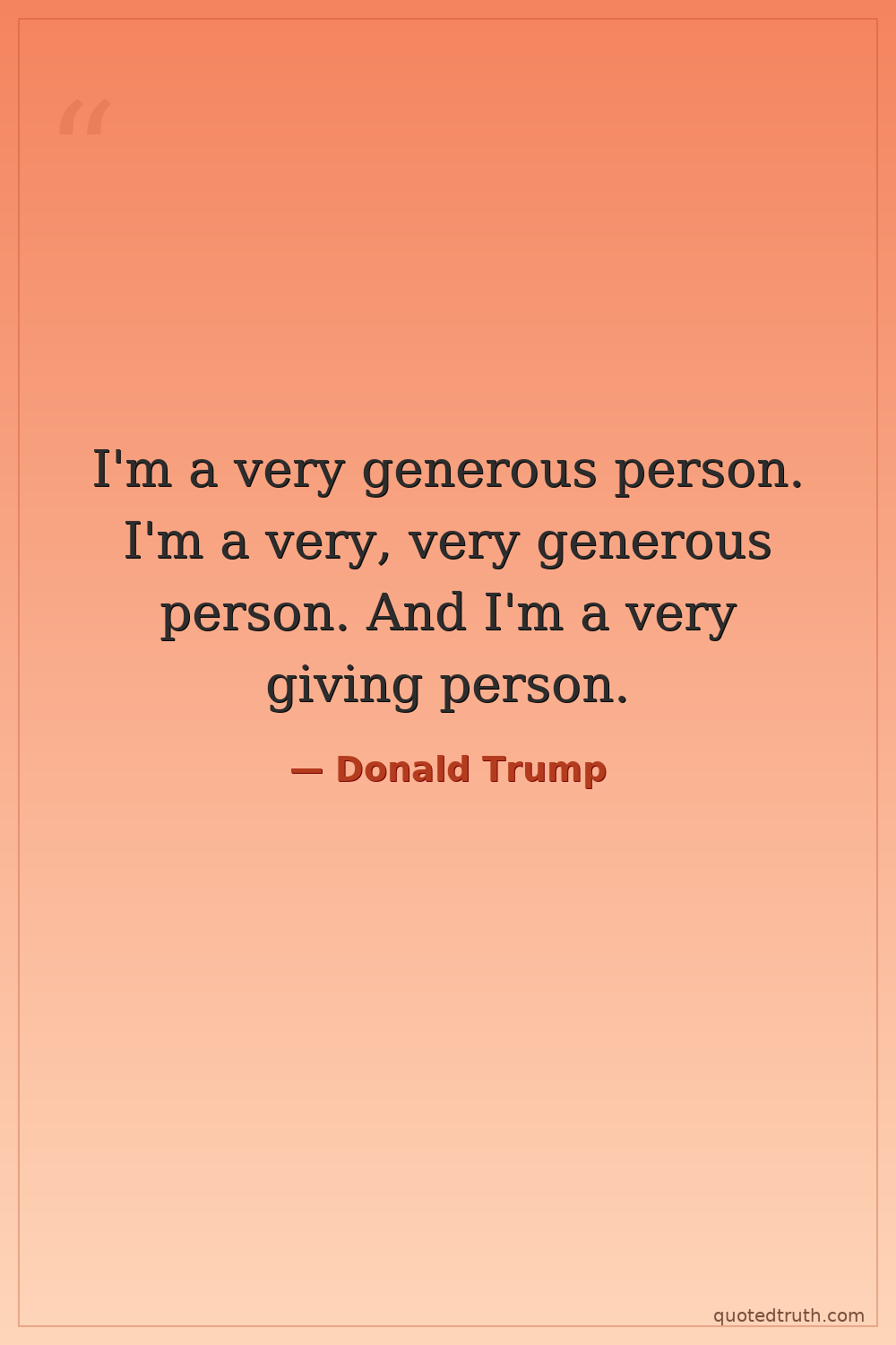 I'm a very generous person. I'm a very, very generous person. And I'm a very giving person.