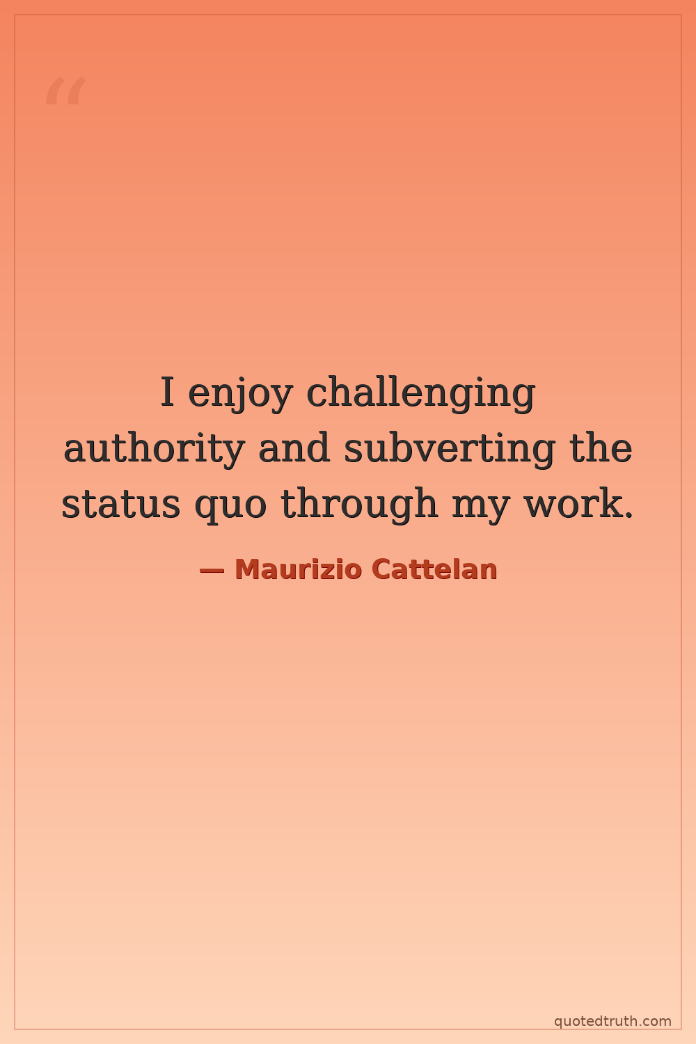 I enjoy challenging authority and subverting the status quo through my work.