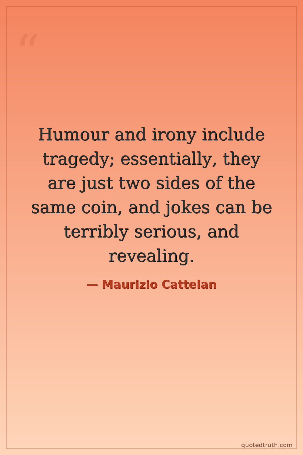 Humour and irony include tragedy; essentially, they are just two sides of the same coin, and jokes can be terribly serious, and revealing.