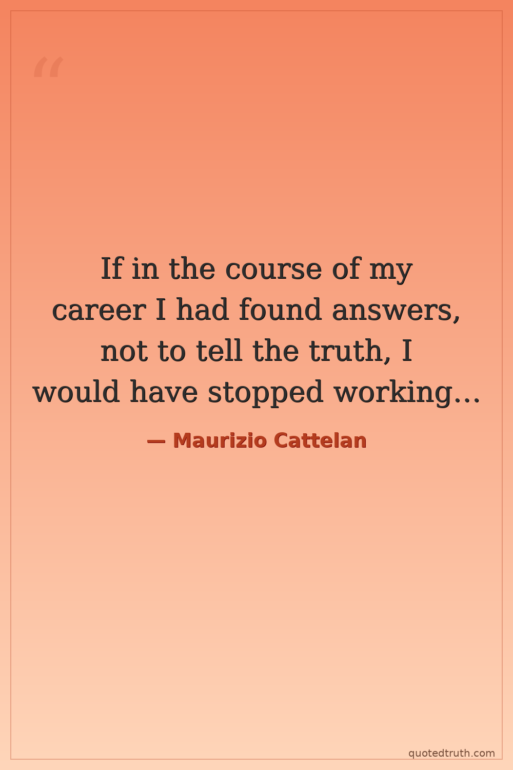 If in the course of my career I had found answers, not to tell the truth, I would have stopped working…