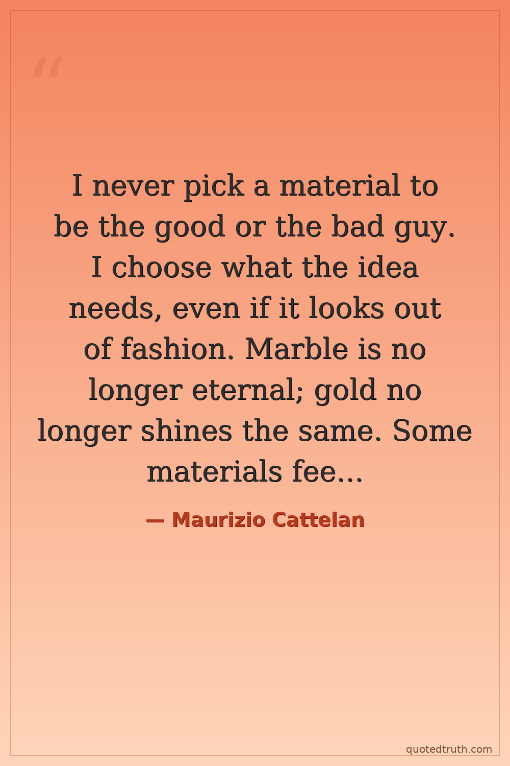 I never pick a material to be the good or the bad guy. I choose what the idea needs, even if it looks out of fashion. Marble is no longer eternal; gold no longer shines the same. Some materials feel almost embarrassing now, and that's why I like them.