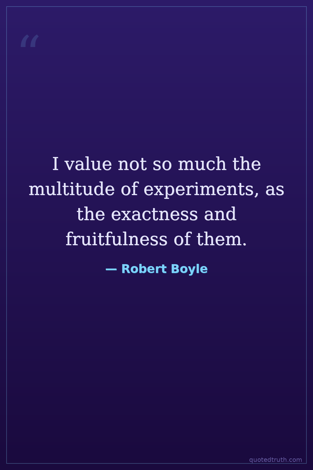I value not so much the multitude of experiments, as the exactness and fruitfulness of them.
