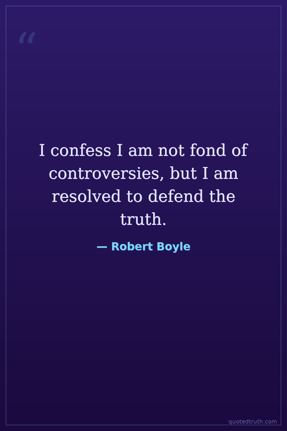 I confess I am not fond of controversies, but I am resolved to defend the truth.