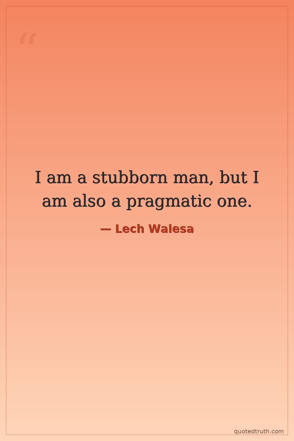 I am a stubborn man, but I am also a pragmatic one.