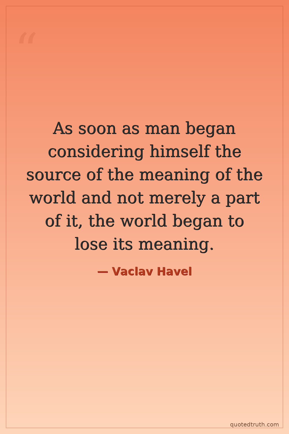As soon as man began considering himself the source of the meaning of the world and not merely a part of it, the world began to lose its meaning.