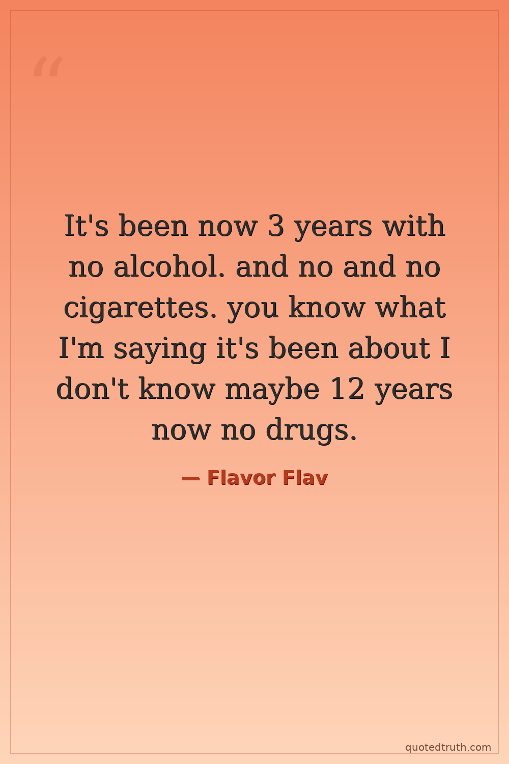 It's been now 3 years with no alcohol. and no and no cigarettes. you know what I'm saying it's been about I don't know maybe 12 years now no drugs.