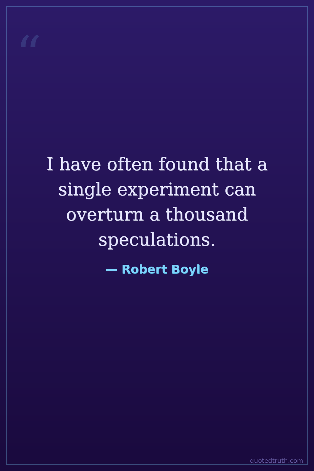 I have often found that a single experiment can overturn a thousand speculations.