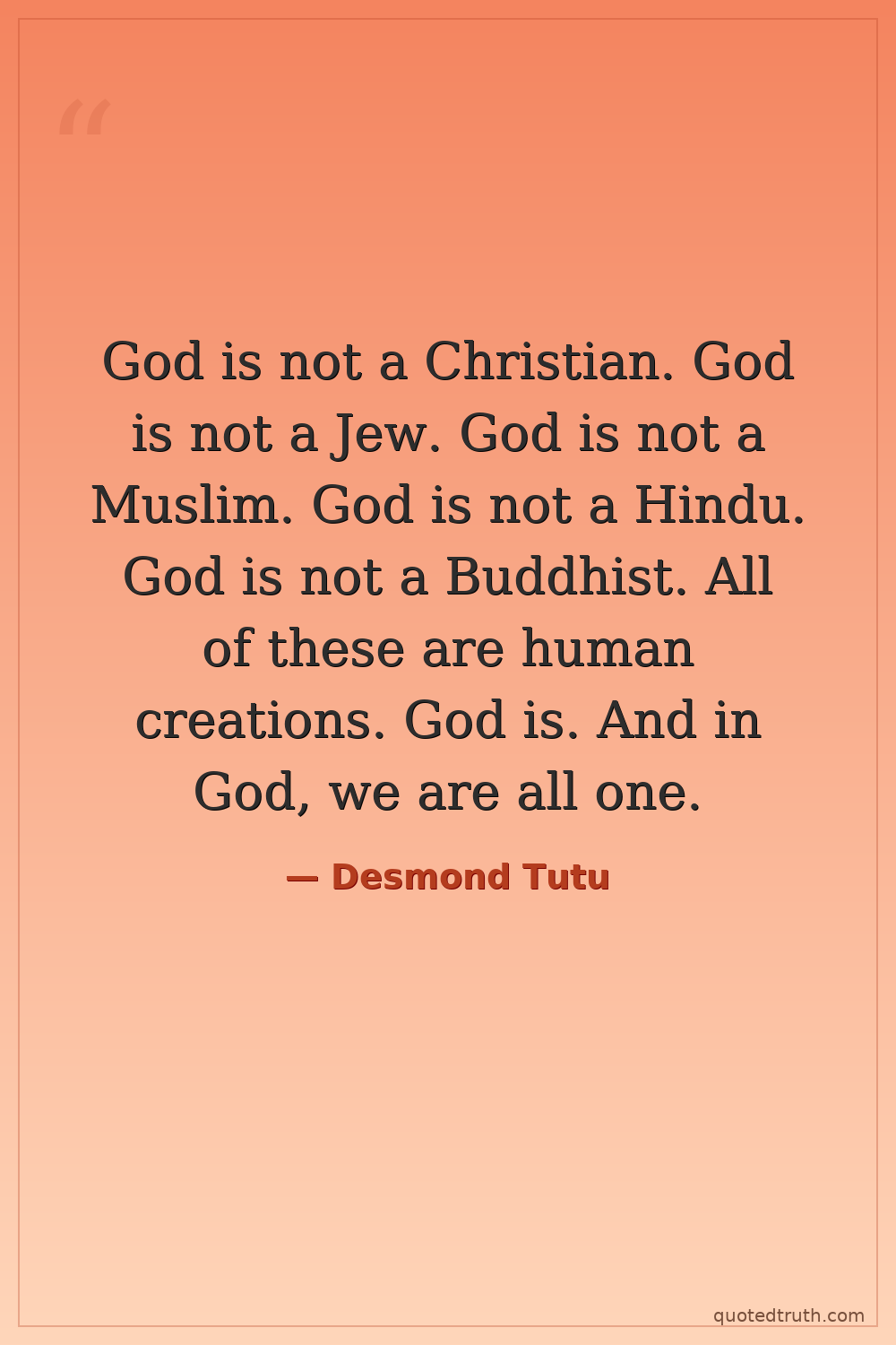God is not a Christian. God is not a Jew. God is not a Muslim. God is not a Hindu. God is not a Buddhist. All of these are human creations. God is. And in God, we are all one.