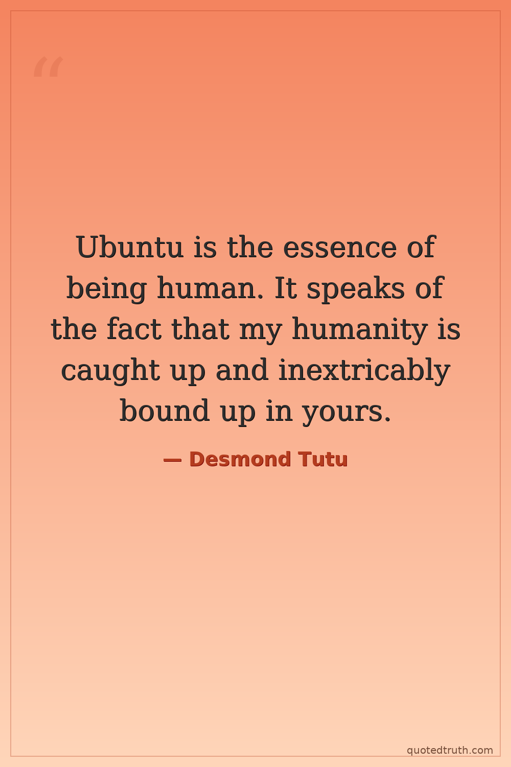 Ubuntu is the essence of being human. It speaks of the fact that my humanity is caught up and inextricably bound up in yours.