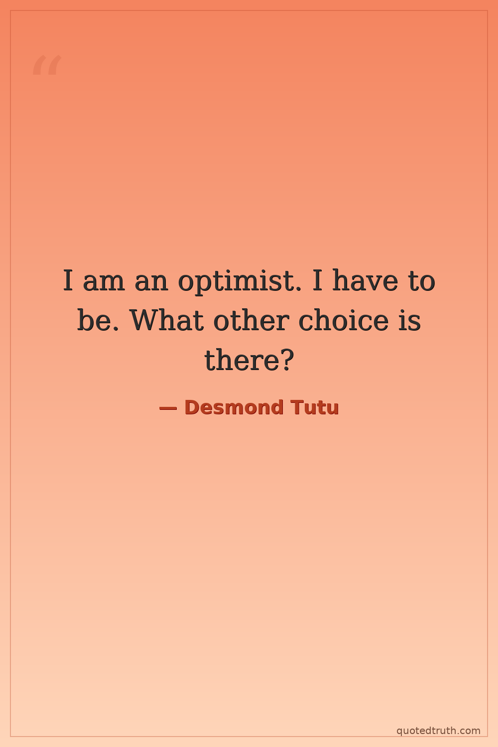 I am an optimist. I have to be. What other choice is there?