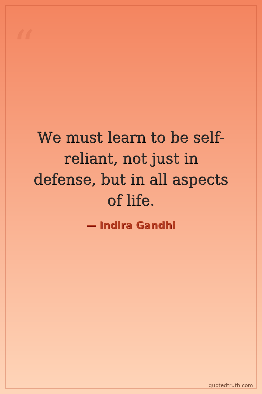 We must learn to be self-reliant, not just in defense, but in all aspects of life.