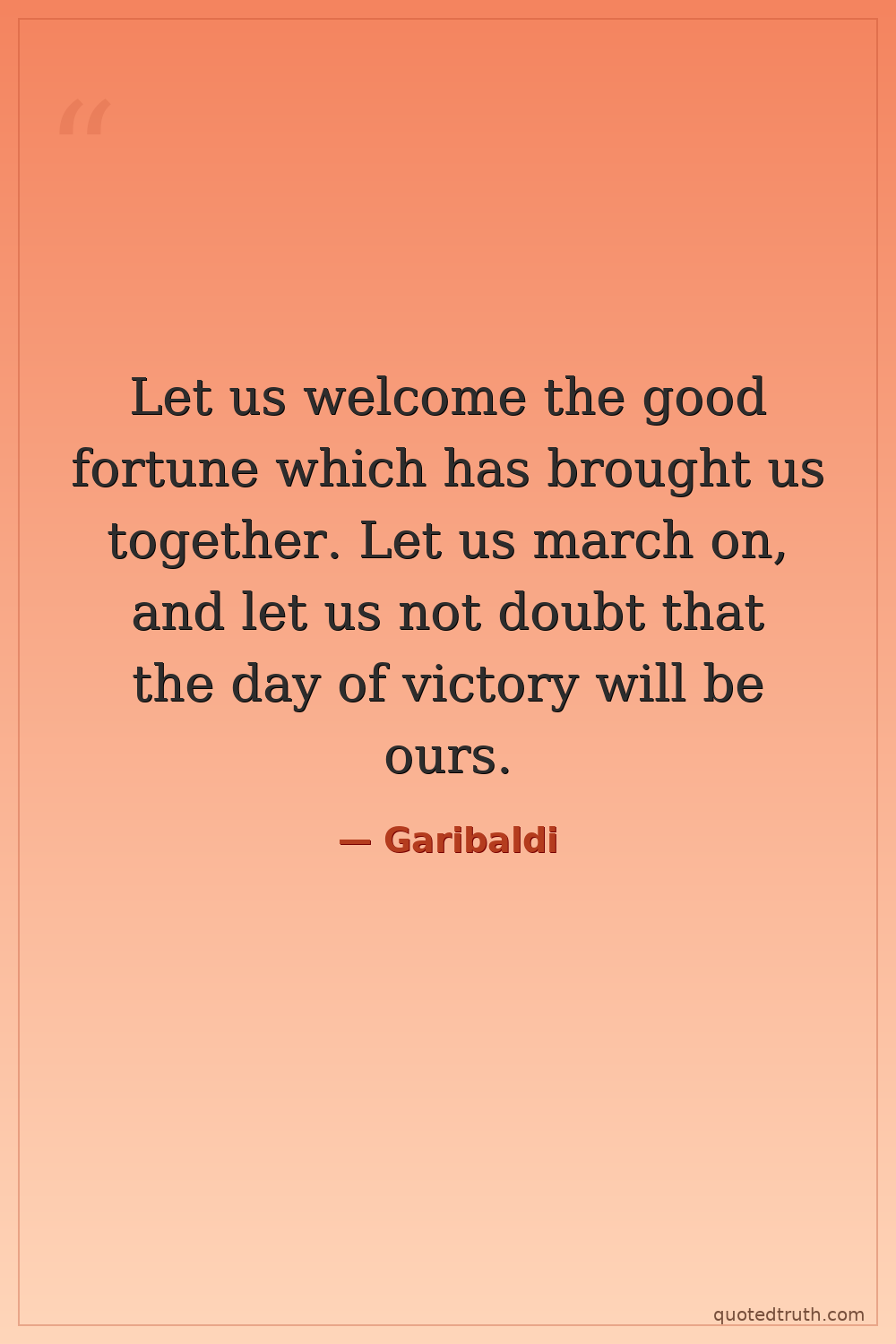 Let us welcome the good fortune which has brought us together. Let us march on, and let us not doubt that the day of victory will be ours.