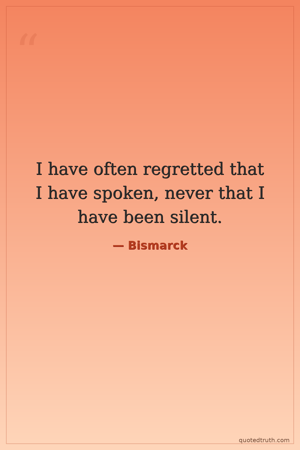 I have often regretted that I have spoken, never that I have been silent.