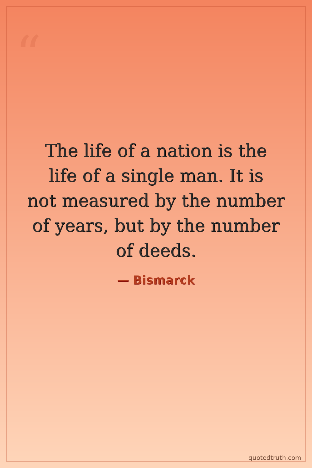 The life of a nation is the life of a single man. It is not measured by the number of years, but by the number of deeds.