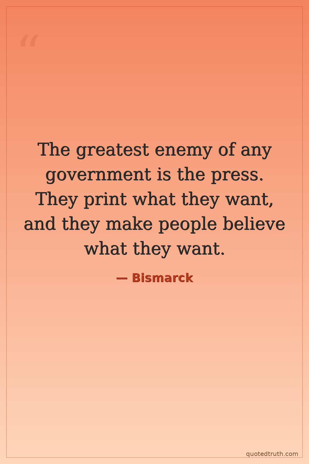 The greatest enemy of any government is the press. They print what they want, and they make people believe what they want.