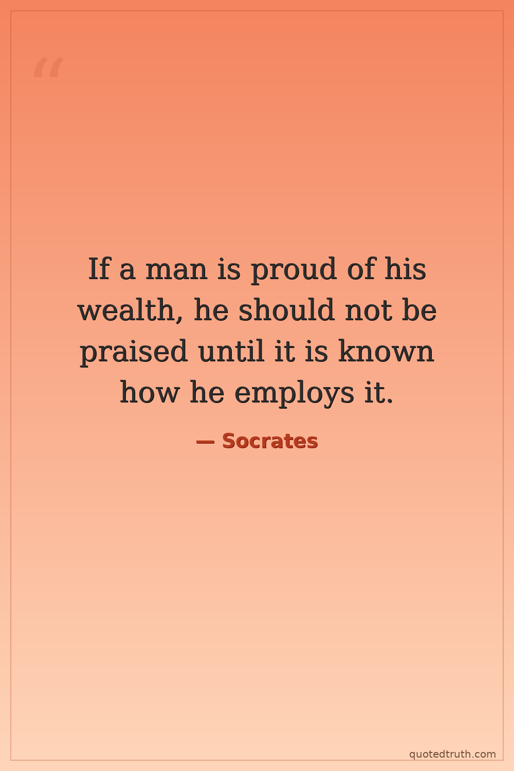 If a man is proud of his wealth, he should not be praised until it is known how he employs it.