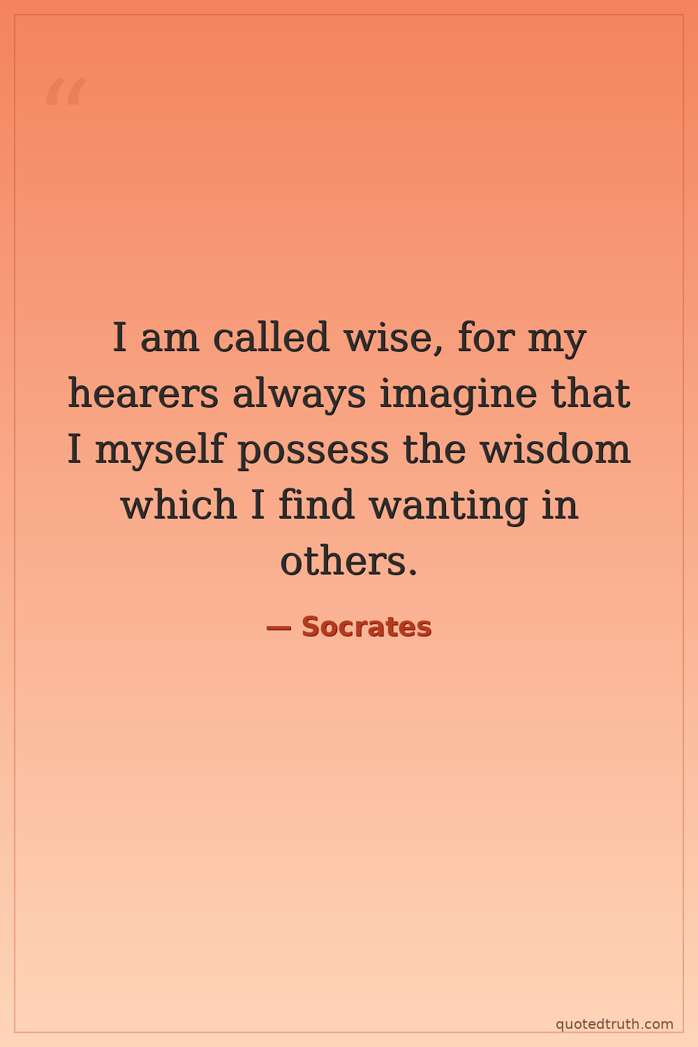 I am called wise, for my hearers always imagine that I myself possess the wisdom which I find wanting in others.