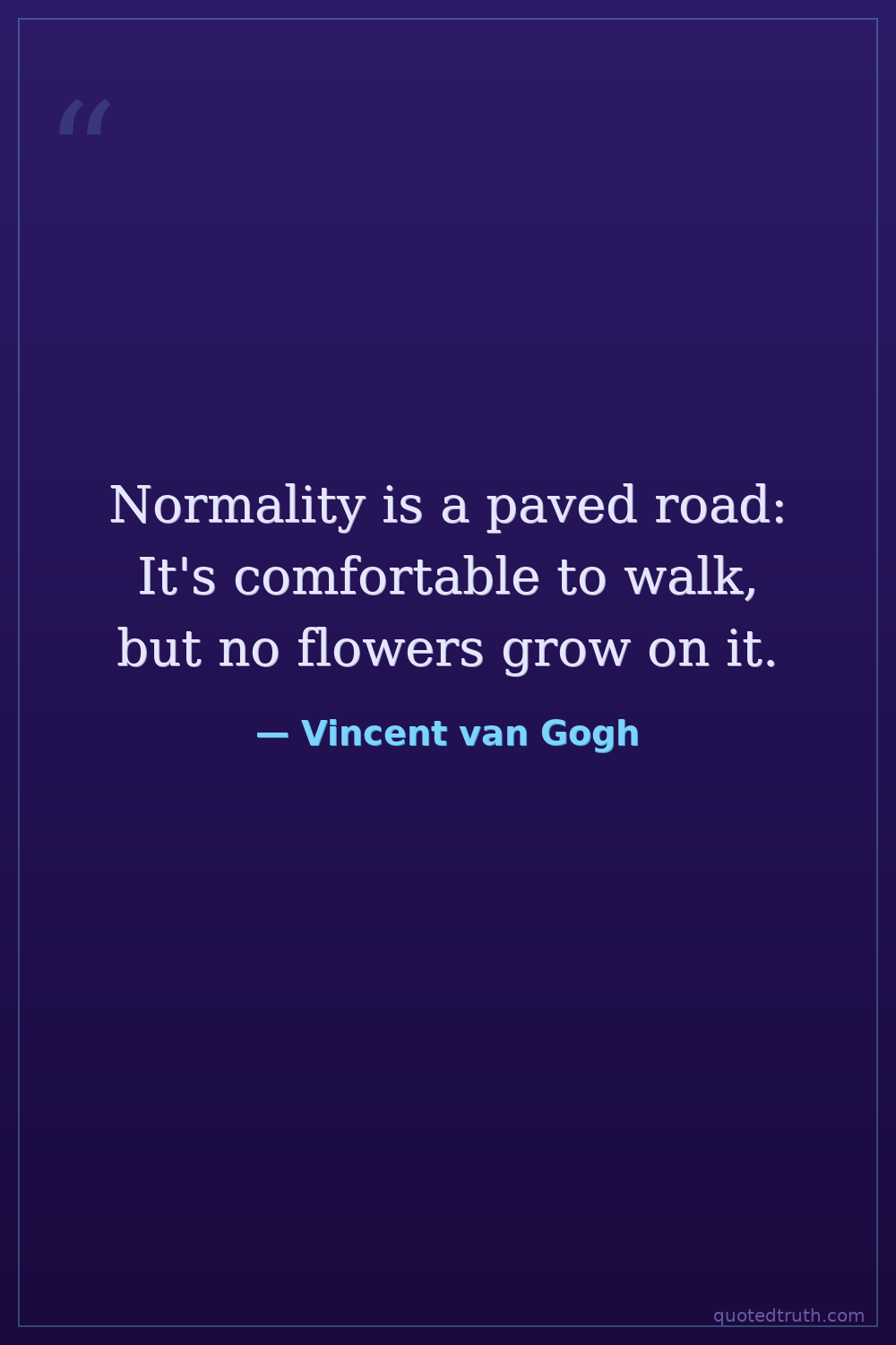 Normality is a paved road: It's comfortable to walk, but no flowers grow on it.
